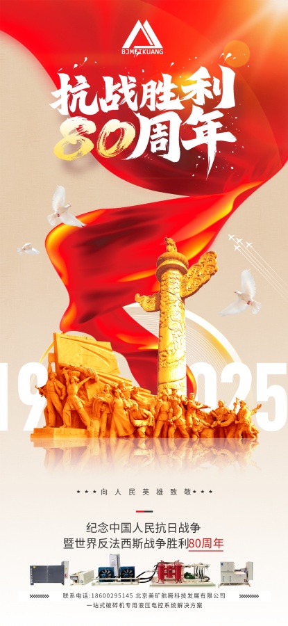 八十年前,先輩浴血奮戰(zhàn),換得山河無恙;八十年后,吾輩賡續(xù)精神,篤行實干報國。在紀念中國人民抗日戰(zhàn)爭暨世界反法西斯戰(zhàn)爭勝利 80 周年之際,美礦航騰以初心敬歷史,以行動踐使命。深耕礦機智能液壓系統(tǒng)制造領(lǐng)域,我們集結(jié)軟件、液壓、機械、電氣工程師核心團隊,自主研發(fā)破碎機、制砂機等礦機液壓潤滑控制系統(tǒng),量身定制礦山智能解決方案,從圓錐破碎機、旋回破碎機、鄂式破碎機、反擊式破碎機、制砂機、振動設(shè)備、移動破碎站的液壓潤滑控制系統(tǒng)的開發(fā)應(yīng)用,以及供應(yīng)適用于國際品牌美卓/山特維克等系列破碎篩分設(shè)備的備品備件,美礦航騰以硬核技術(shù)服務(wù)海內(nèi)外客戶,深受好評。銘記歷史不是停駐過往,而是以奮斗奔赴未來。美礦航騰將始終秉持科技創(chuàng)新理念,以更優(yōu)質(zhì)的礦機液壓產(chǎn)品、更專業(yè)的服務(wù),在實業(yè)興邦路上堅定前行,為礦山行業(yè)發(fā)展、國家建設(shè)注入力量!