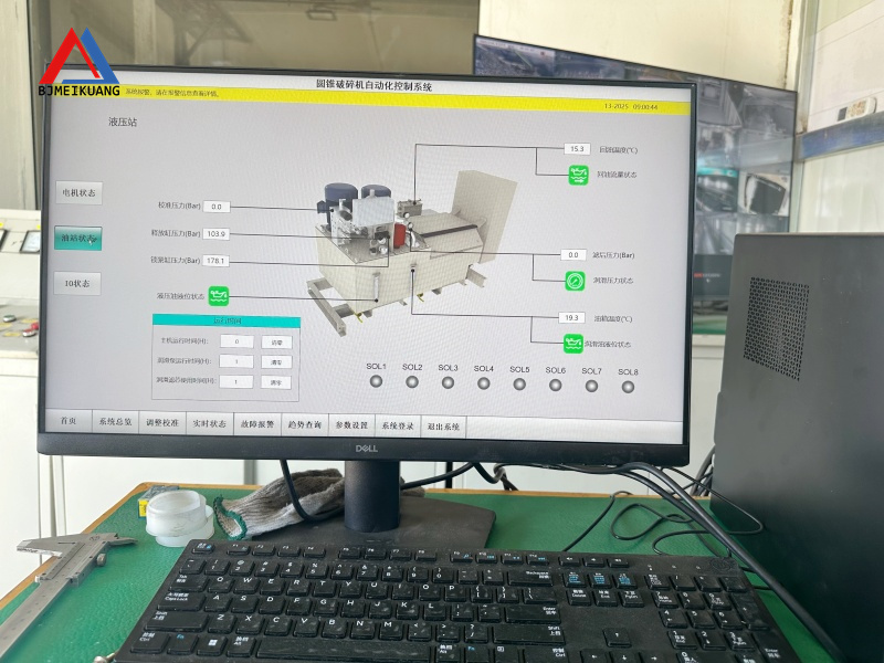 冬季設備啟動后,避免立刻滿負荷高強度作業,需先空載運行 10-15 分鐘,反復操作液壓泵使動錐緩慢升降,待回油溫度升至 40℃以上、壓力穩定在 0.3-0.6MPa 后,再按 20%→50%→100% 的階段逐步加料,每階段運行不少于 5 分鐘,同時監測溫度不超 55℃、電流不超額定值。