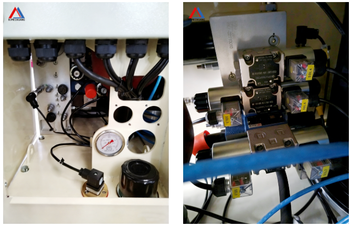2. 目測檢查液壓閥組、管路接頭、釋放缸 / 鎖緊缸是否滲漏油,滲漏點及時密封修復;