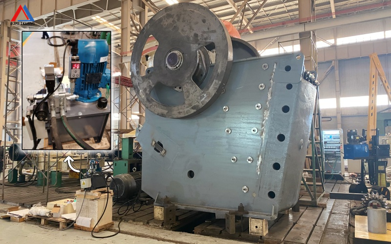針對大噸位顎破(如 PE1200×1500 等重型機型),北京美礦液壓系統還配備機架液壓鎖緊功能: